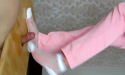 Feetjob fetish stocking Thai teen jerking boyfriend cock until he cum