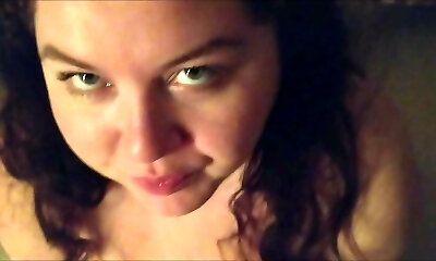 Long haired stunner jacking a hard cumshooter in close up pov clip