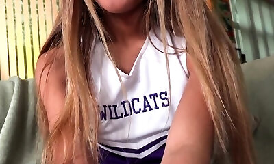 Tugging Pov Asian cheerleader wanks cock