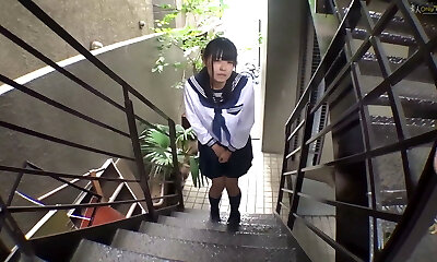 Japanese teenage in schoolgirl uniform stripped
