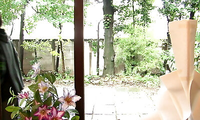 Ryoko clothed in kimono is ready to reveal the tramp inside her